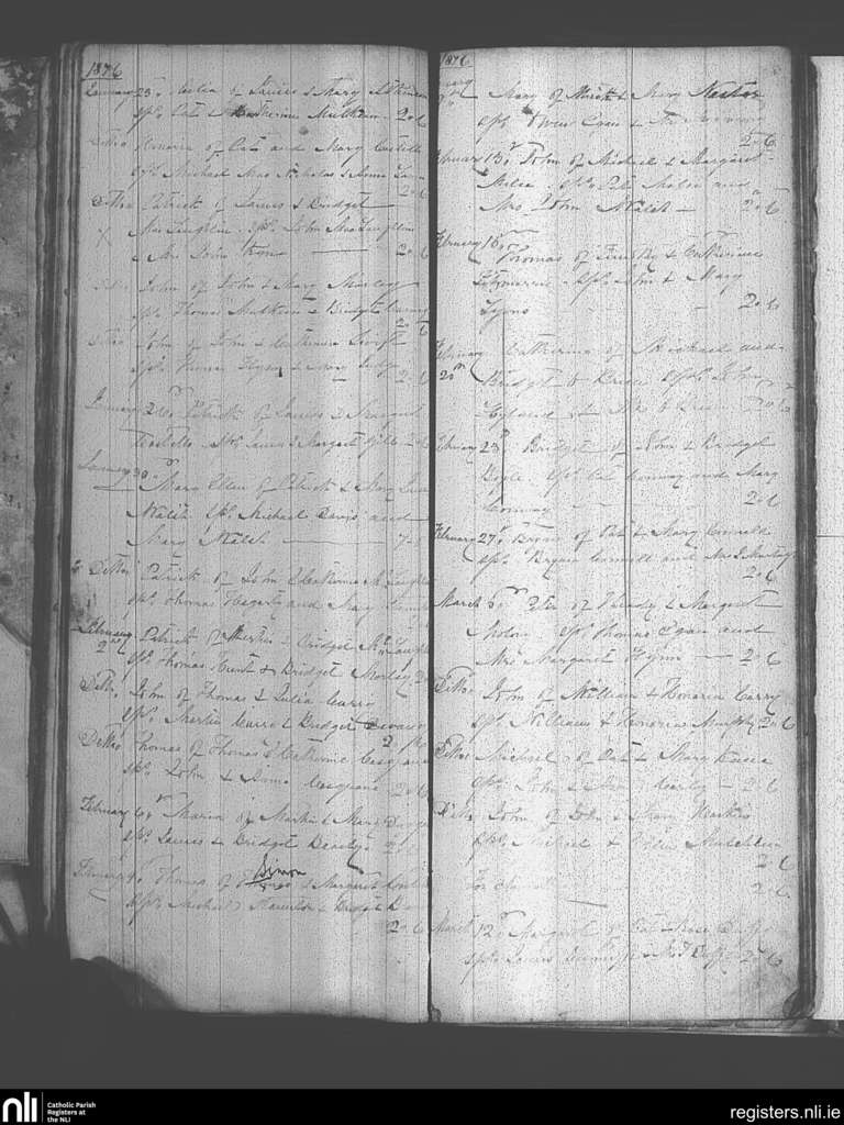 Knock; County of Mayo; Archdiocese of Tuam. Baptisms, Jan. 1876 to Mar. 1876