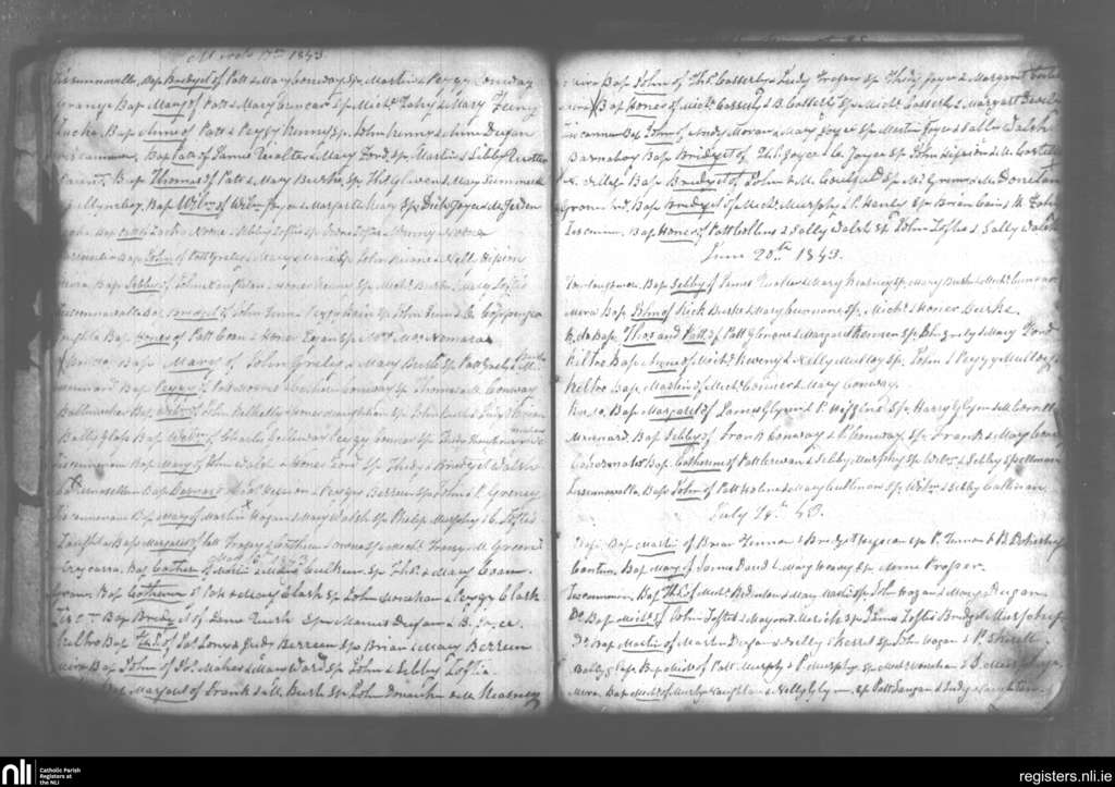 Lackagh; County of Galway; Archdiocese of Tuam. Baptisms, Mar. 1843 to July 1843
