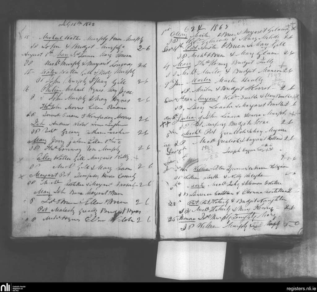 Lackagh; County of Galway; Archdiocese of Tuam. Baptisms, July 1862 to Jan. 1863