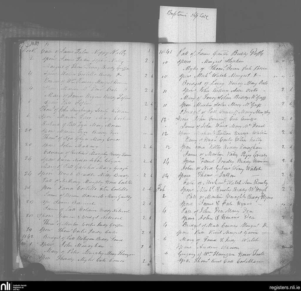 Mayo Abbey; County of Mayo; Archdiocese of Tuam. Baptisms, Dec. 1841 to Feb. 1842