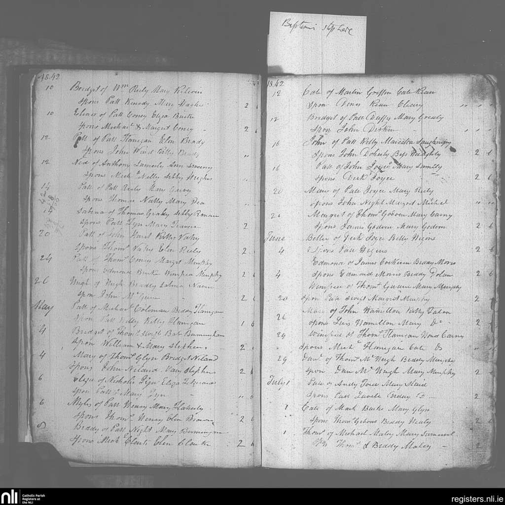 Mayo Abbey; County of Mayo; Archdiocese of Tuam. Baptisms, Apr. 1842 to July 1842