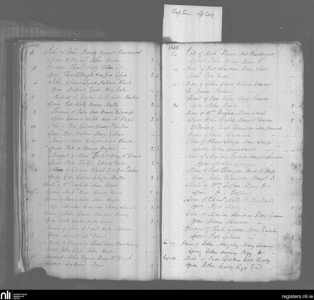 Mayo Abbey; County of Mayo; Archdiocese of Tuam. Baptisms, July 1842 to Sep. 1842
