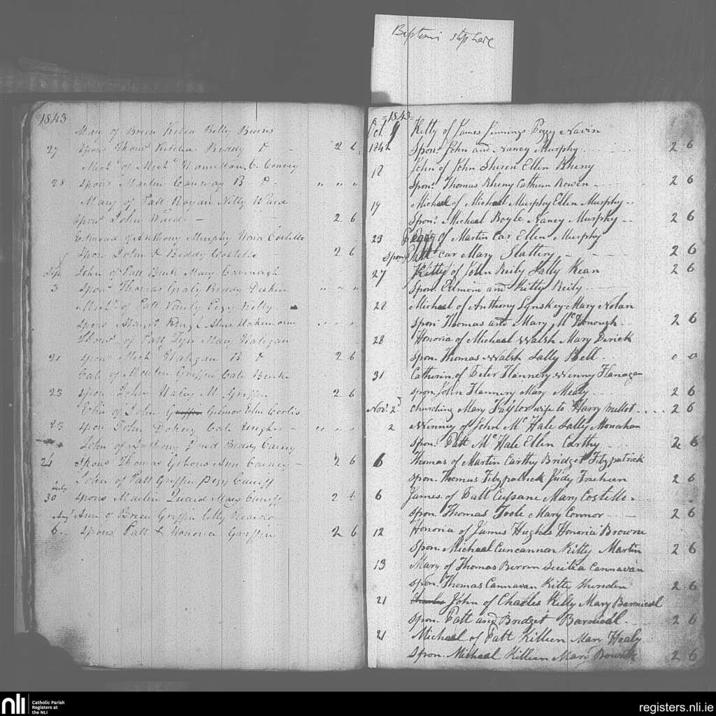 Mayo Abbey; County of Mayo; Archdiocese of Tuam. Baptisms, Oct. 1842 to Sep. 1843