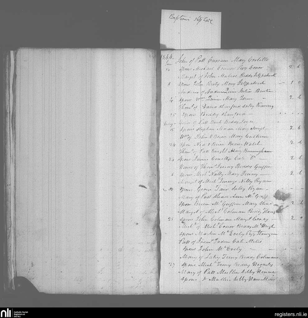 Mayo Abbey; County of Mayo; Archdiocese of Tuam. Baptisms, June 1844 to July 1844