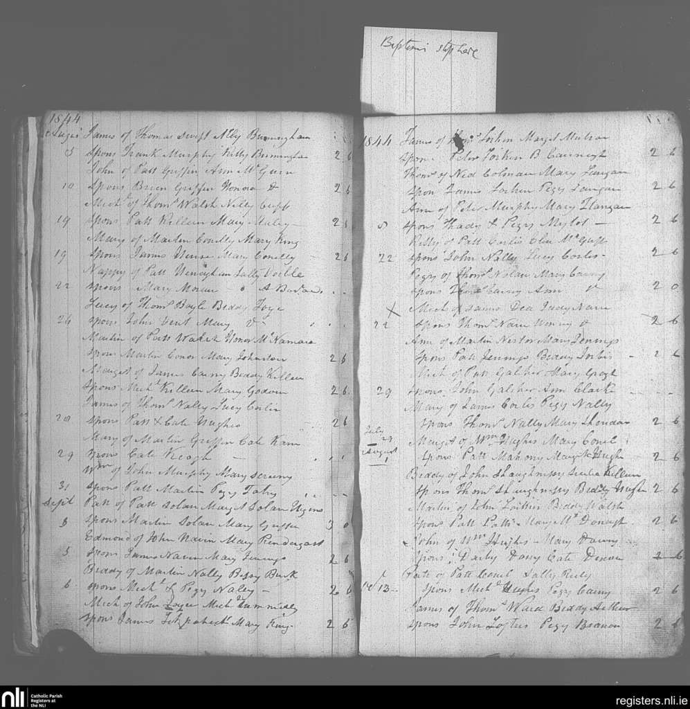 Mayo Abbey; County of Mayo; Archdiocese of Tuam. Baptisms, July 1844 to Oct. 1844