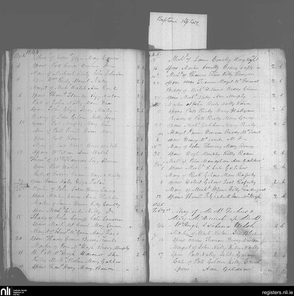 Mayo Abbey; County of Mayo; Archdiocese of Tuam. Baptisms, Oct. 1844 to Feb. 1845