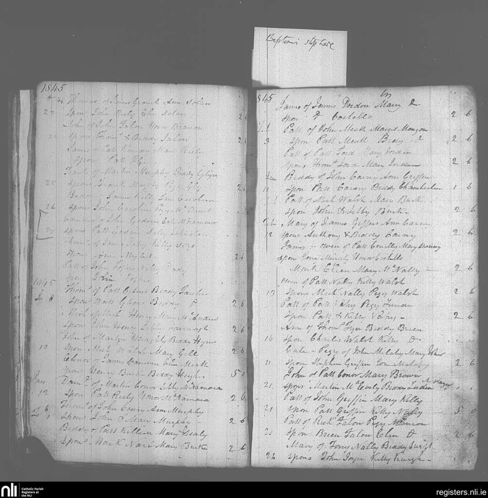 Mayo Abbey; County of Mayo; Archdiocese of Tuam. Baptisms, Jan. 1845 to Feb. 1845