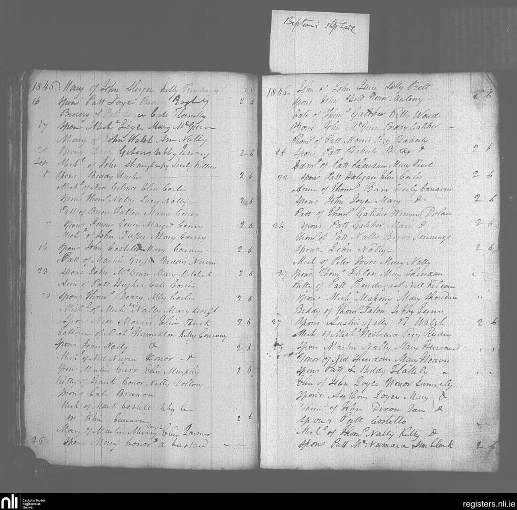 Mayo Abbey; County of Mayo; Archdiocese of Tuam. Baptisms, Aug. 1846 to Sep. 1846