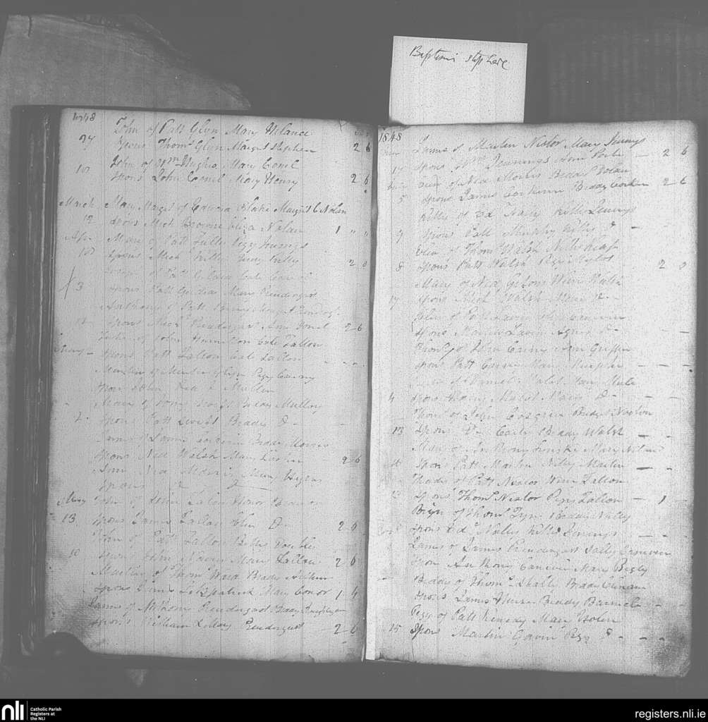 Mayo Abbey; County of Mayo; Archdiocese of Tuam. Baptisms, Feb. 1848 to Aug. 1848
