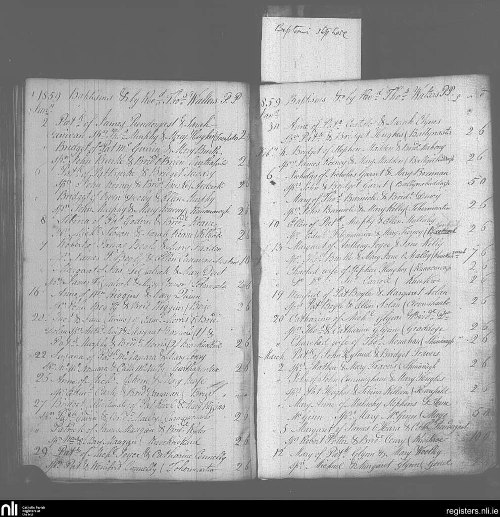 Mayo Abbey; County of Mayo; Archdiocese of Tuam. Baptisms, Jan. 1859 to Mar. 1859