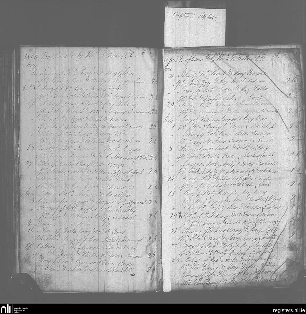Mayo Abbey; County of Mayo; Archdiocese of Tuam. Baptisms, May 1860 to July 1860
