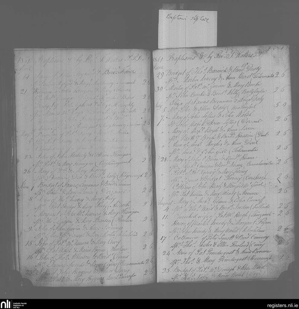 Mayo Abbey; County of Mayo; Archdiocese of Tuam. Baptisms, Apr. 1861 to Aug. 1861