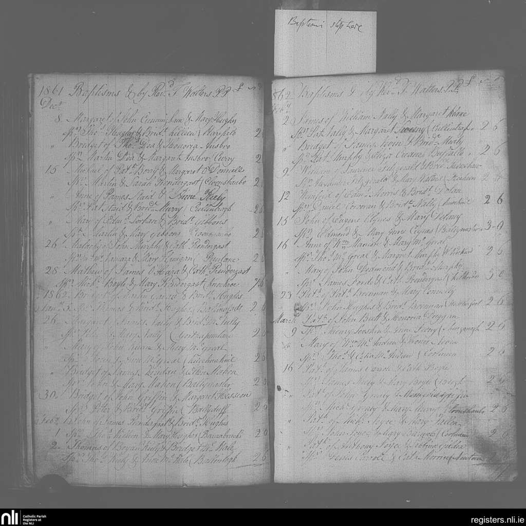 Mayo Abbey; County of Mayo; Archdiocese of Tuam. Baptisms, Dec. 1861 to Mar. 1862