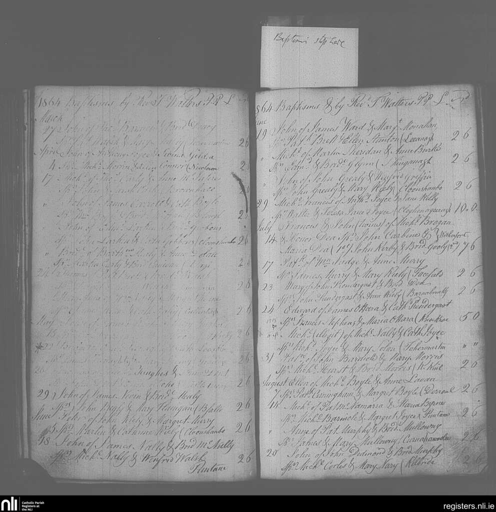 Mayo Abbey; County of Mayo; Archdiocese of Tuam. Baptisms, Mar. 1864 to Aug. 1864