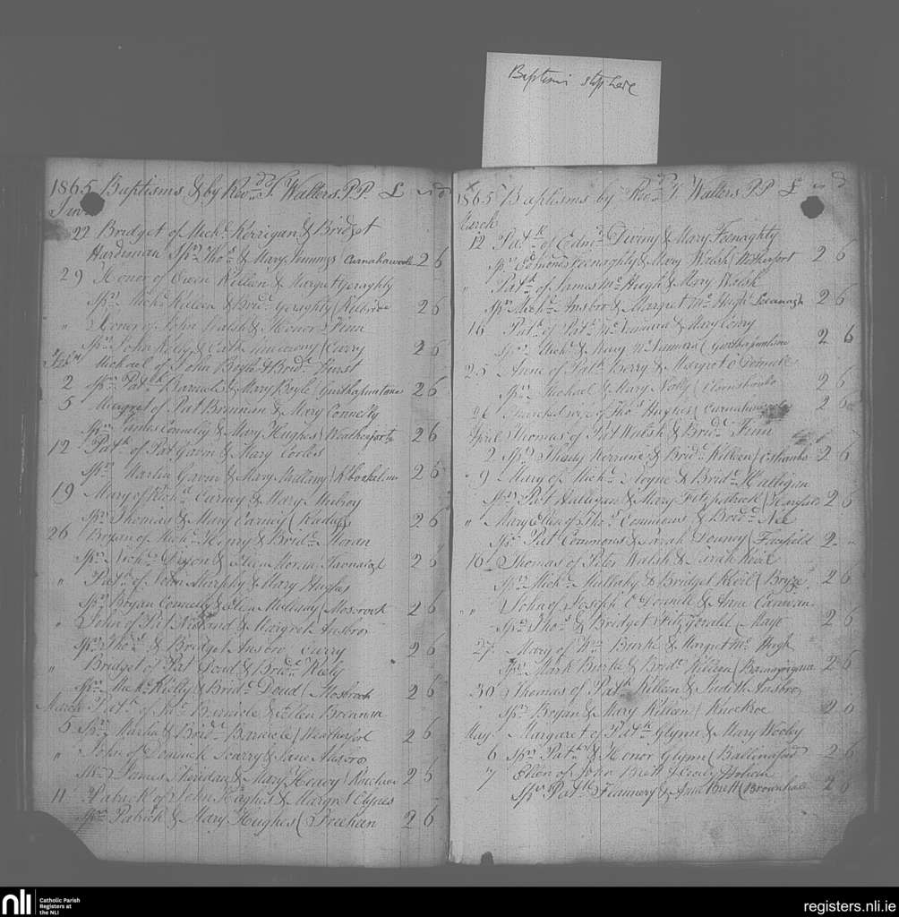 Mayo Abbey; County of Mayo; Archdiocese of Tuam. Baptisms, Jan. 1865 to May 1865