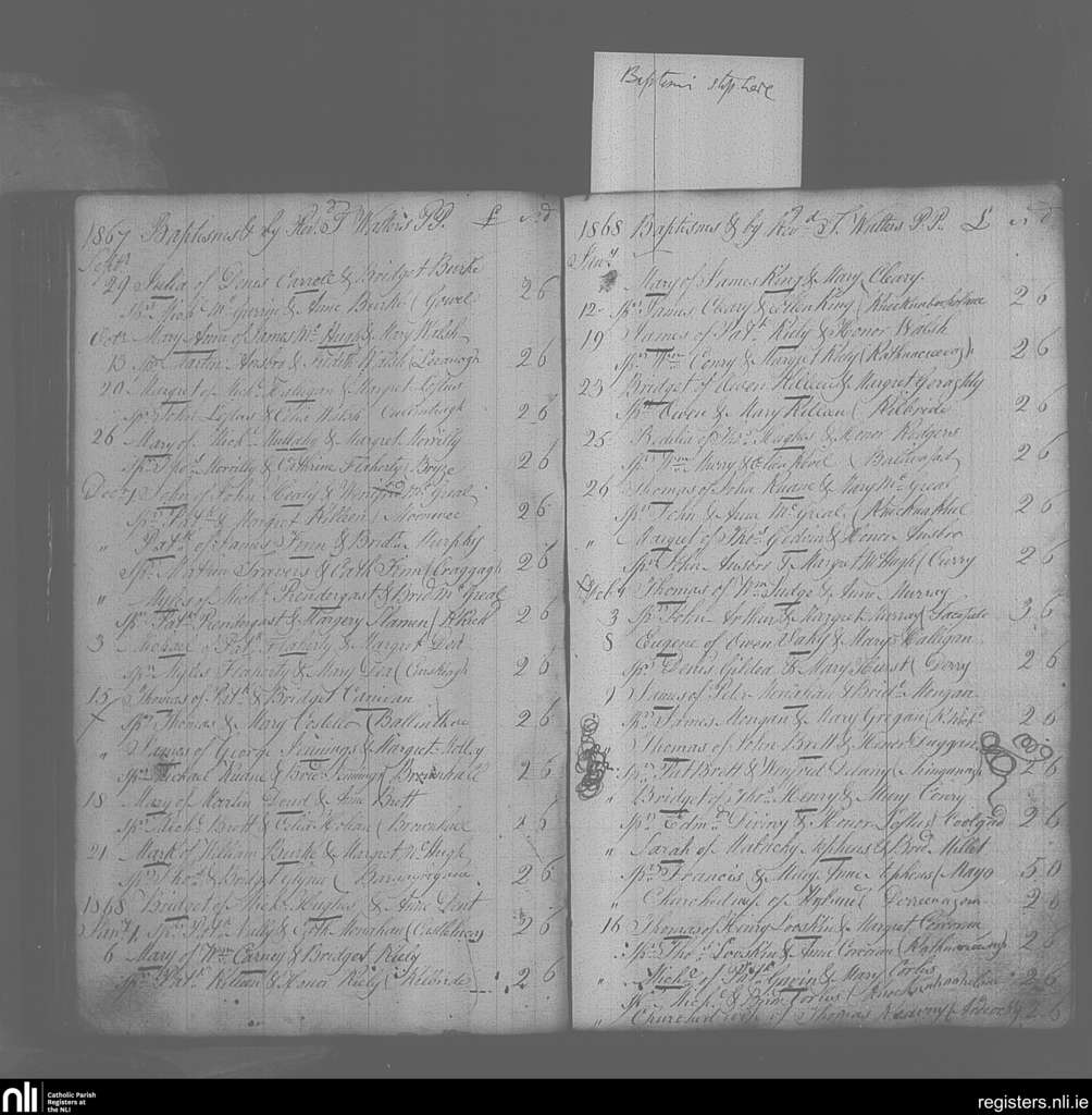 Mayo Abbey; County of Mayo; Archdiocese of Tuam. Baptisms, Sep. 1867 to Feb. 1868