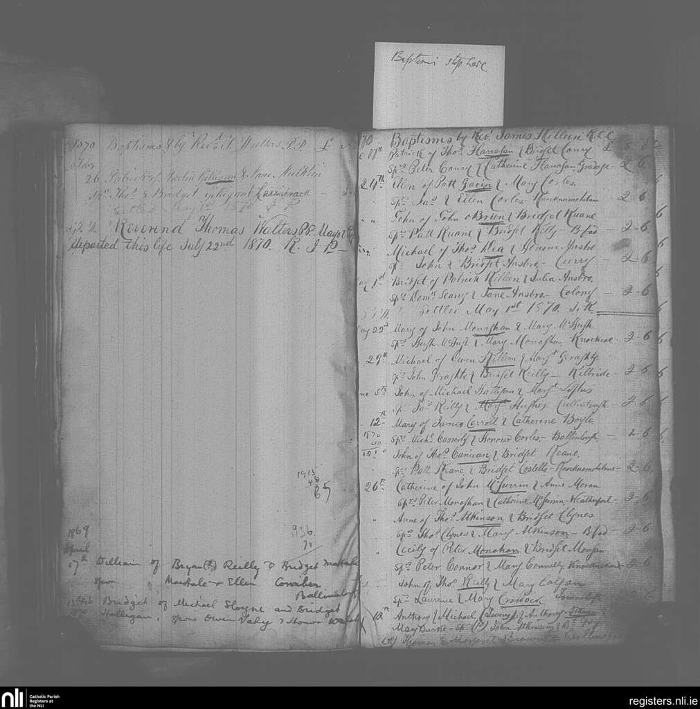Mayo Abbey; County of Mayo; Archdiocese of Tuam. Baptisms, Apr. 1869 to June 1870