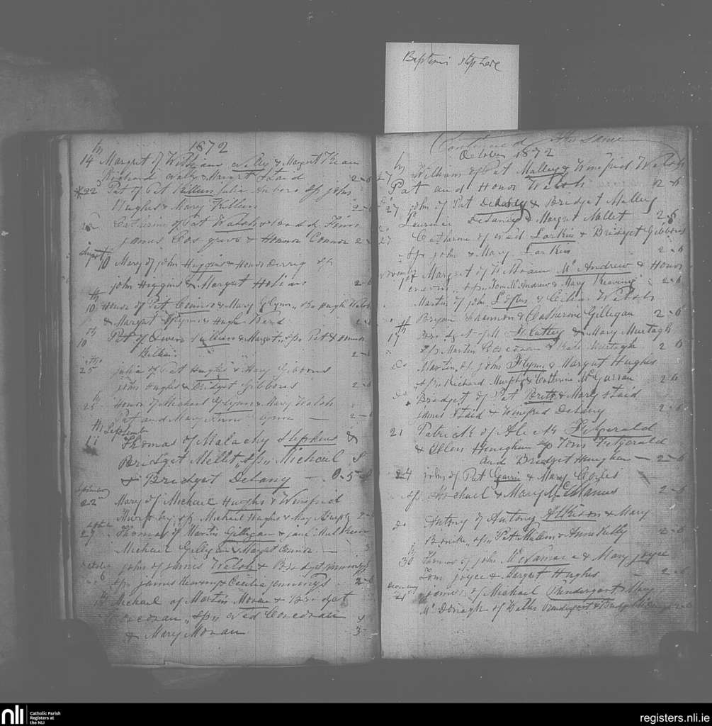 Mayo Abbey; County of Mayo; Archdiocese of Tuam. Baptisms, July 1872 to Dec. 1872