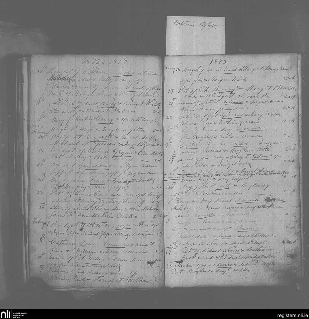 Mayo Abbey; County of Mayo; Archdiocese of Tuam. Baptisms, Marriages, Dec. 1872 to Apr. 1910