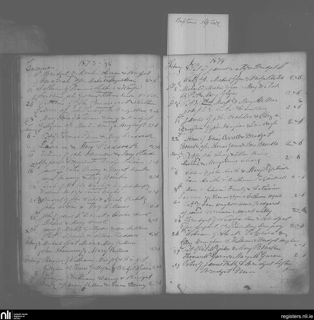 Mayo Abbey; County of Mayo; Archdiocese of Tuam. Baptisms, Dec. 1873 to Mar. 1874