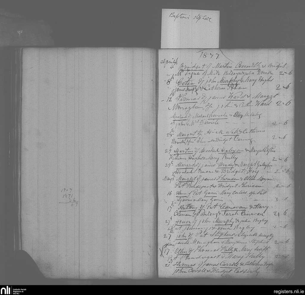 Mayo Abbey; County of Mayo; Archdiocese of Tuam. Baptisms, Apr. 1877 to June 1877