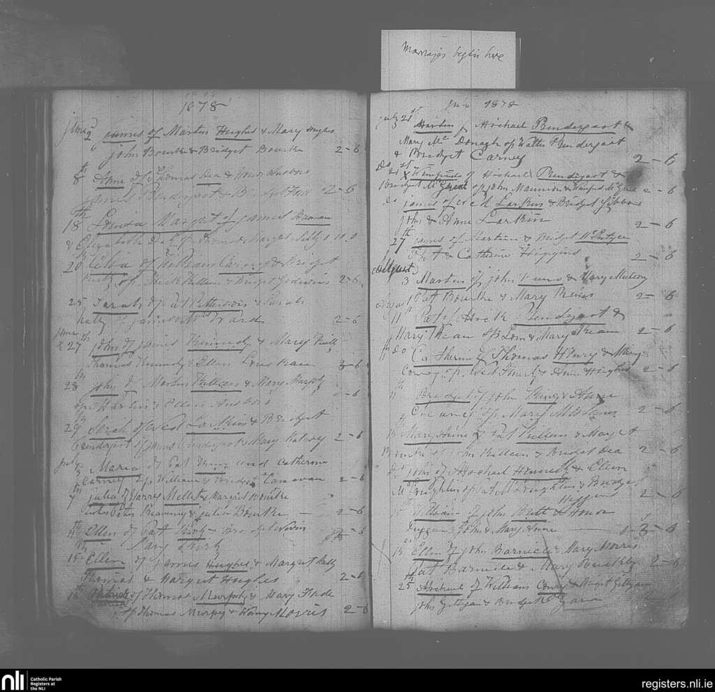 Mayo Abbey; County of Mayo; Archdiocese of Tuam. Baptisms, June 1878 to Aug. 1878