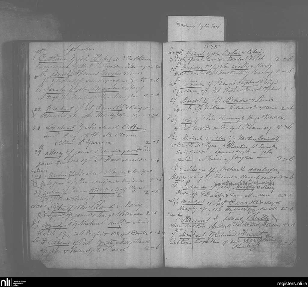 Mayo Abbey; County of Mayo; Archdiocese of Tuam. Baptisms, Marriages, Sep. 1878 to Nov. 1921