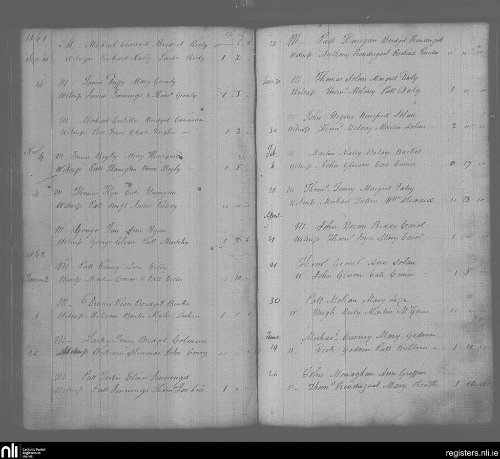 Mayo Abbey; County of Mayo; Archdiocese of Tuam. Marriages, Sep. 1841 to June 1842