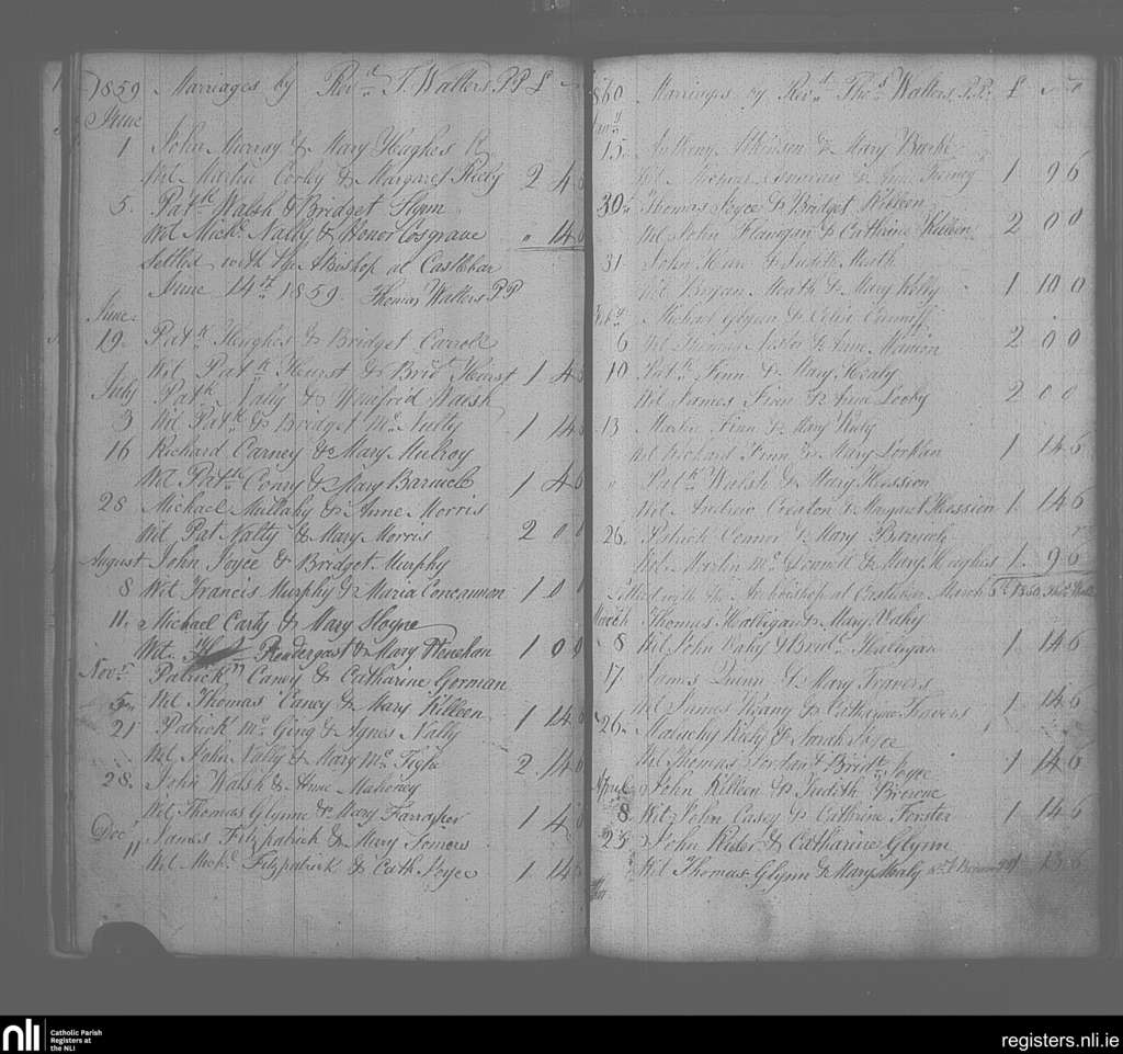 Mayo Abbey; County of Mayo; Archdiocese of Tuam. Marriages, June 1859 to Apr. 1860