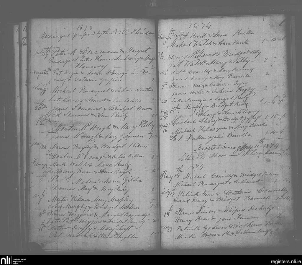 Mayo Abbey; County of Mayo; Archdiocese of Tuam. Marriages, July 1873 to Oct. 1874