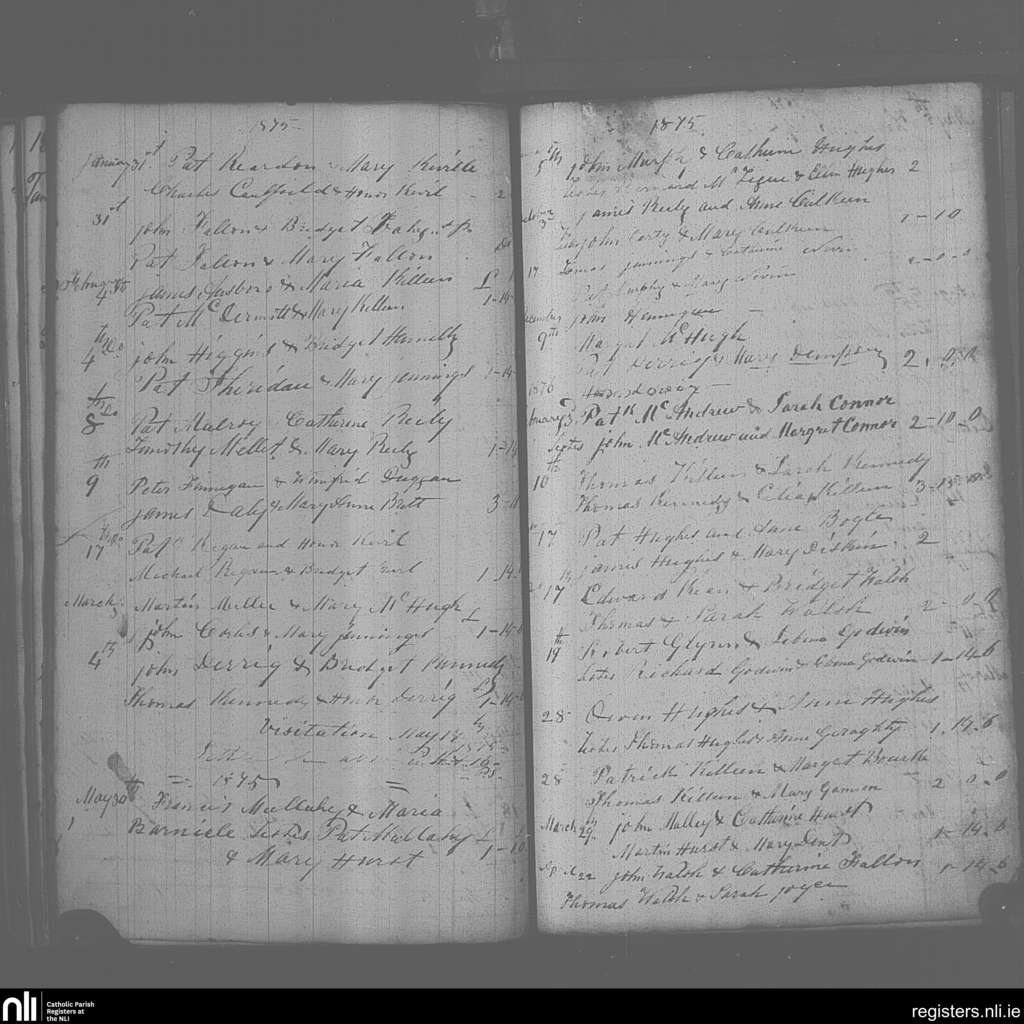 Mayo Abbey; County of Mayo; Archdiocese of Tuam. Marriages, Jan. 1875 to Apr. 1876