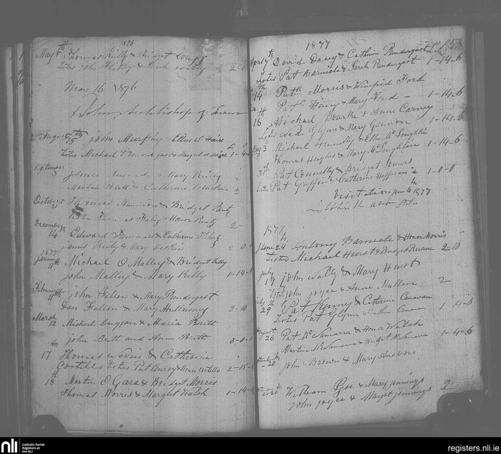 Mayo Abbey; County of Mayo; Archdiocese of Tuam. Marriages, May 1876 to Sep. 1877