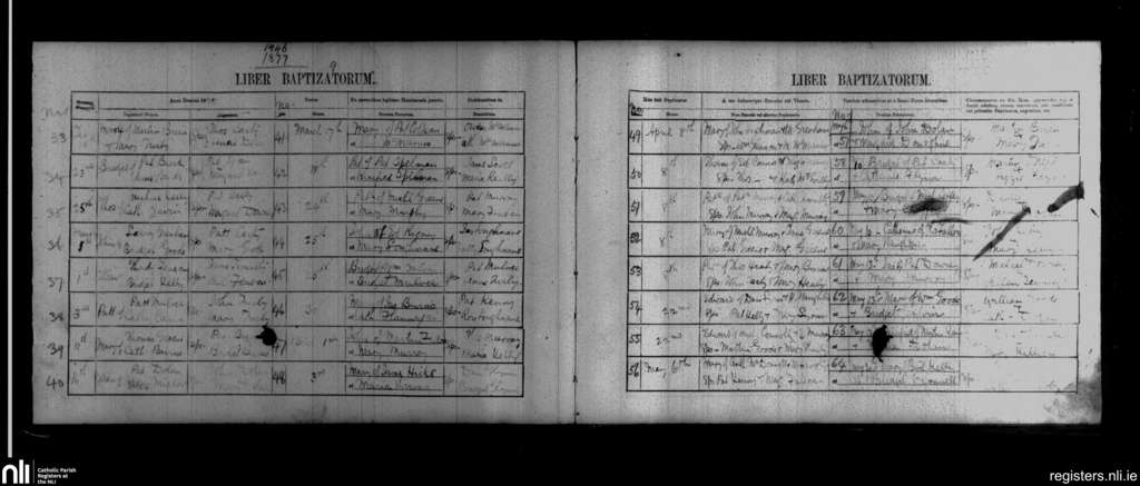 Moore; County of Roscommon; Archdiocese of Tuam. Baptisms, Feb. 1877 to May 1877
