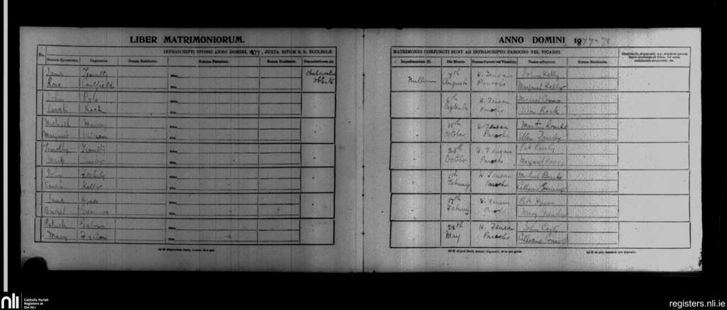 Moore; County of Roscommon; Archdiocese of Tuam. Marriages, Aug. 1877 to May 1878