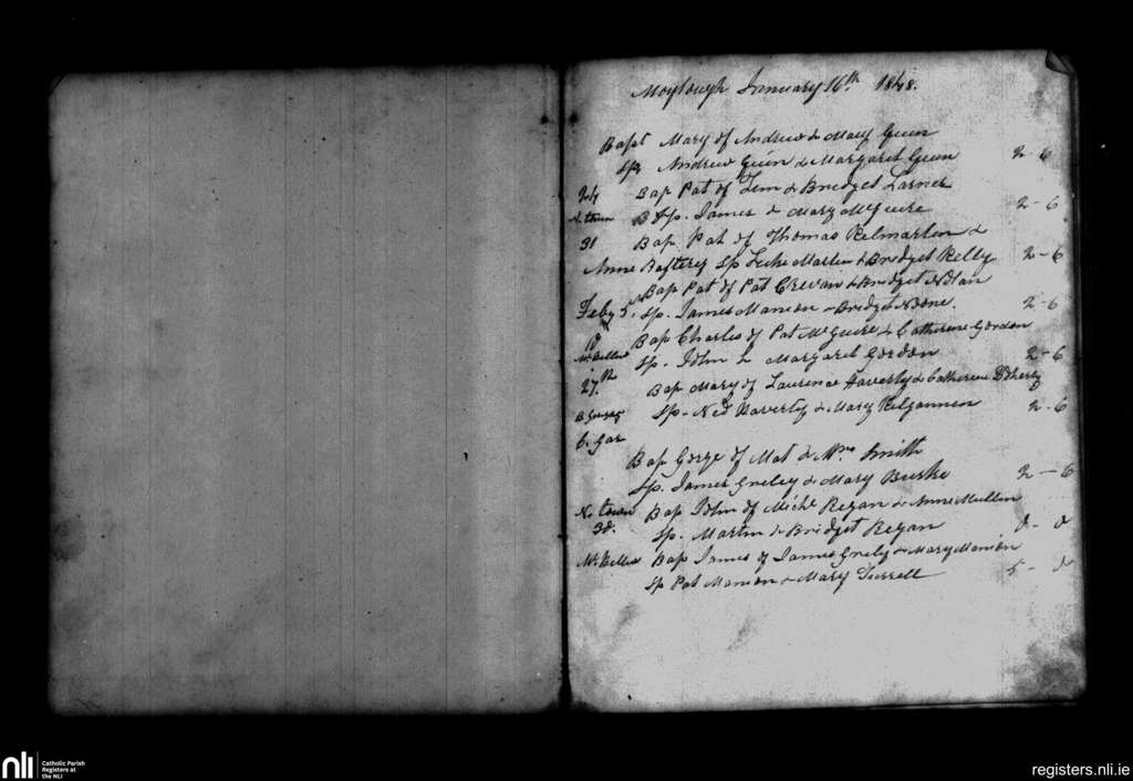 Moylough; County of Galway; Archdiocese of Tuam. Baptisms, Jan. 1848 to Feb. 1848