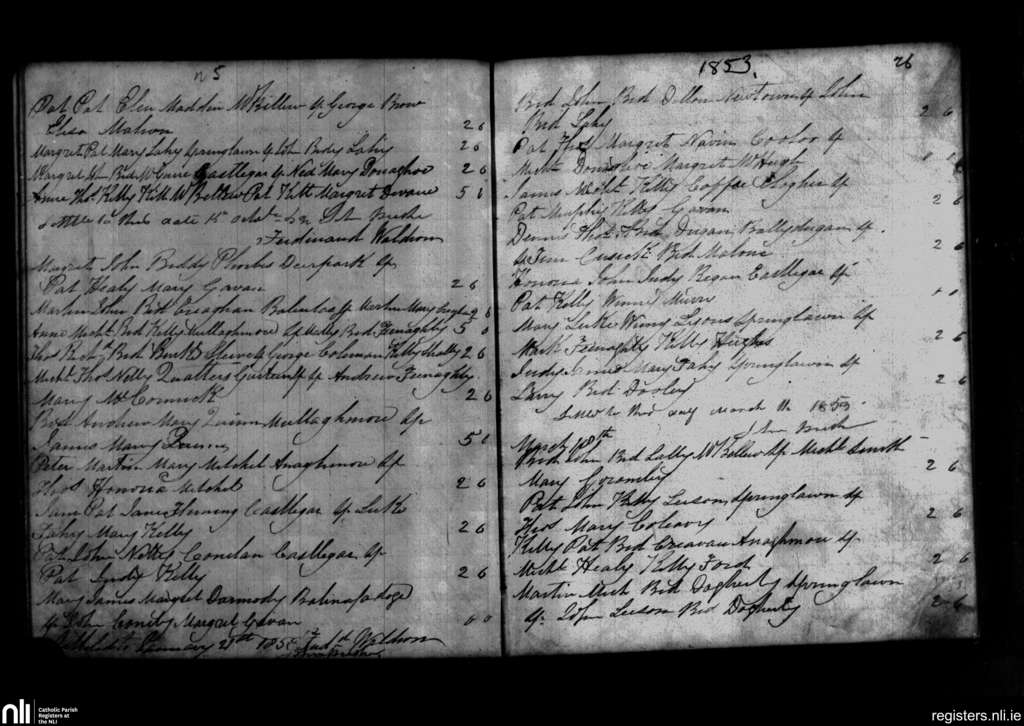 Moylough; County of Galway; Archdiocese of Tuam. Baptisms, Mar. 1853
