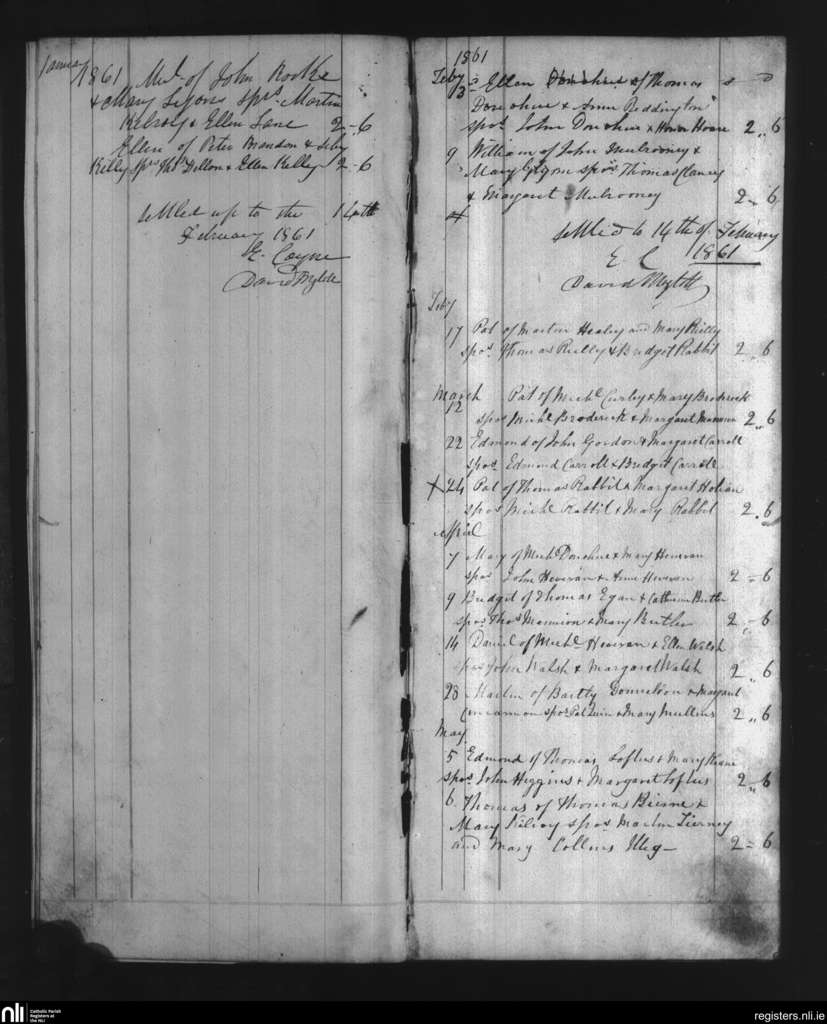 Moylough; County of Galway; Archdiocese of Tuam. Baptisms, Jan. 1861 to May 1861