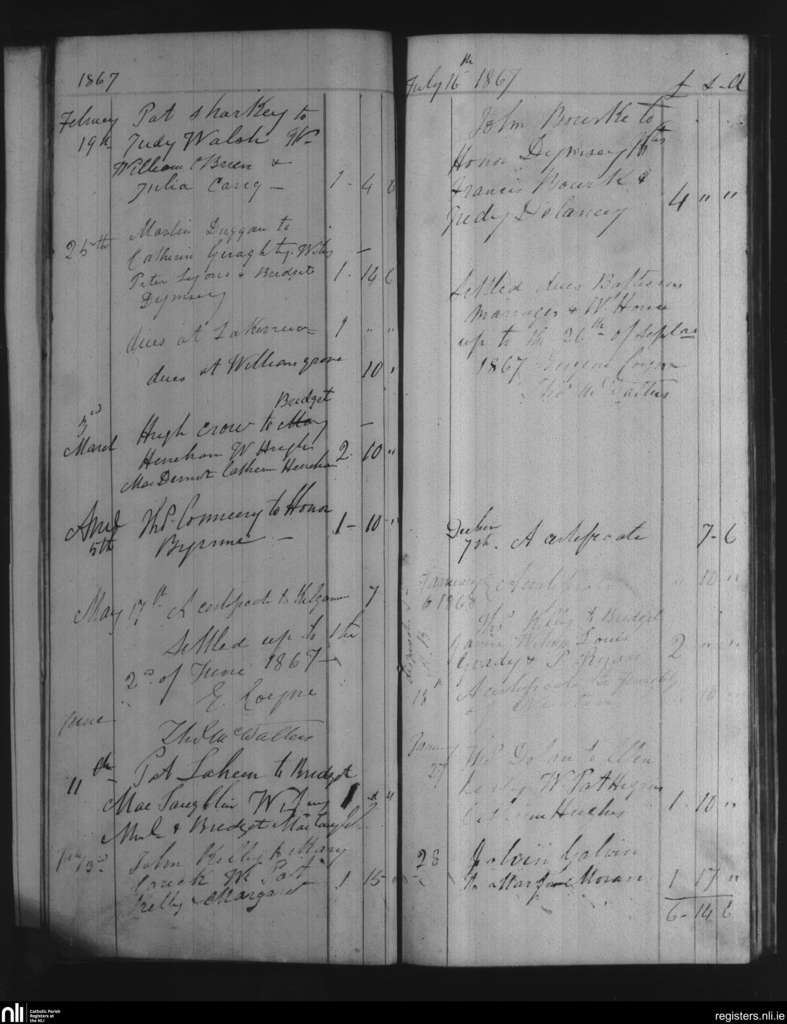 Moylough; County of Galway; Archdiocese of Tuam. Marriages, Feb. 1867 to Jan. 1868