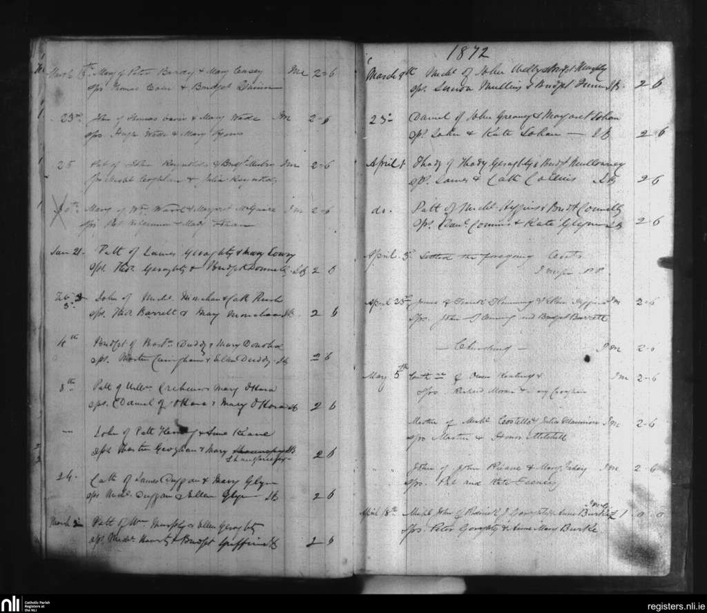 Moylough; County of Galway; Archdiocese of Tuam. Baptisms, Jan. 1872 to May 1872