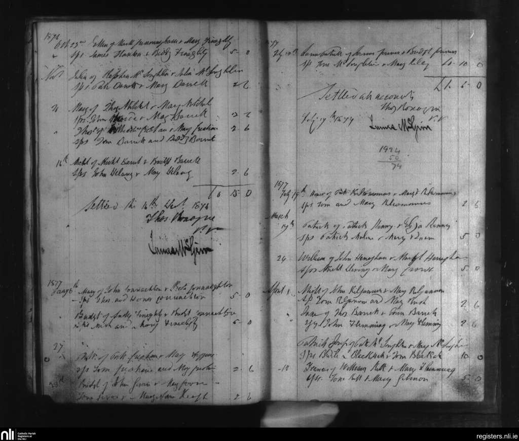 Moylough; County of Galway; Archdiocese of Tuam. Baptisms, Oct. 1876 to Apr. 1877