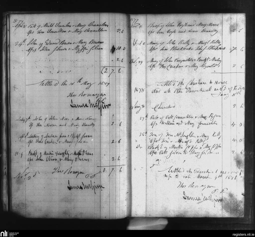 Moylough; County of Galway; Archdiocese of Tuam. Baptisms, Apr. 1877 to Jan. 1878