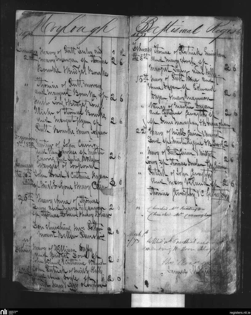 Moylough; County of Galway; Archdiocese of Tuam. Baptisms, Dec. 1872 to Feb. 1873