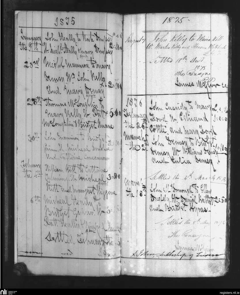 Moylough; County of Galway; Archdiocese of Tuam. Marriages, Jan. 1875 to Mar. 1876