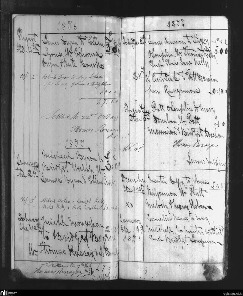 Moylough; County of Galway; Archdiocese of Tuam. Marriages, Aug. 1876 to Jan. 1878