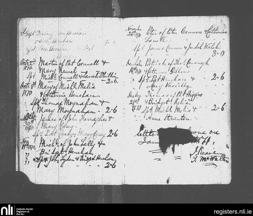 Partry; County of Mayo; Archdiocese of Tuam. Baptisms, Sep. 1870 to Dec. 1870
