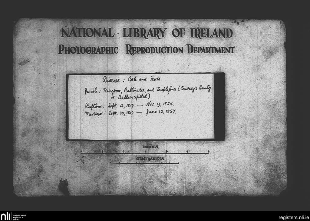 Ringrone; County of Cork; Diocese of Cork and Ross. Baptisms, Marriages