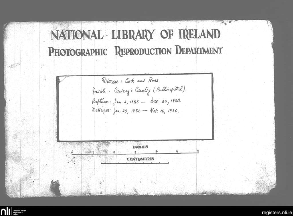 Ringrone; County of Cork; Diocese of Cork and Ross. Baptisms, Marriages
