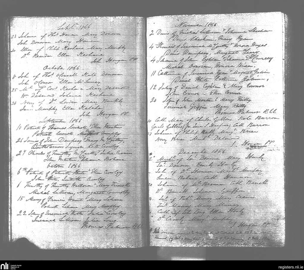 Ringrone; County of Cork; Diocese of Cork and Ross. Baptisms, Sep. 1866 to Dec. 1866