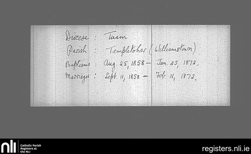 Templetoher; County of Galway; Archdiocese of Tuam. Baptisms, Marriages
