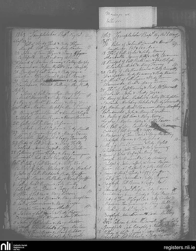 Templetoher; County of Galway; Archdiocese of Tuam. Baptisms, Aug. 1863 to Nov. 1863